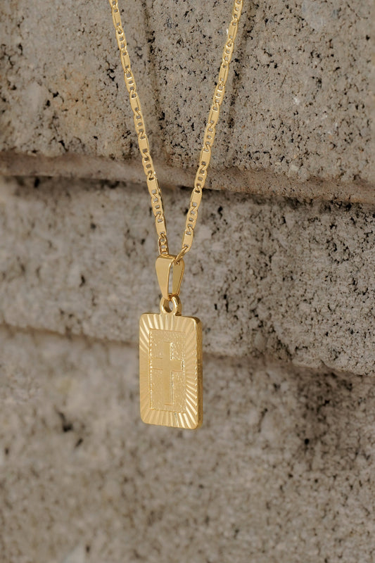 Cadena Escalera Delgada Plana Lisa 65cms + Dije Cruz Verde