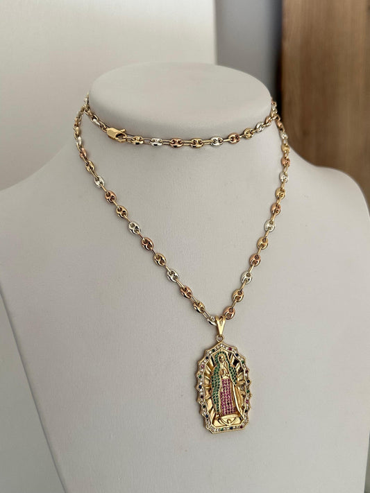 Cadena gcc 3 oros 60cm + Dije virgen Guadalupe grande swarovski exclusive