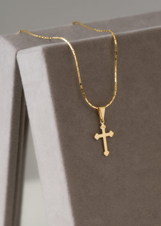 Cadena cordón cuadrado 1mm 65cm + dije cruz ínri delgada 1.5cms