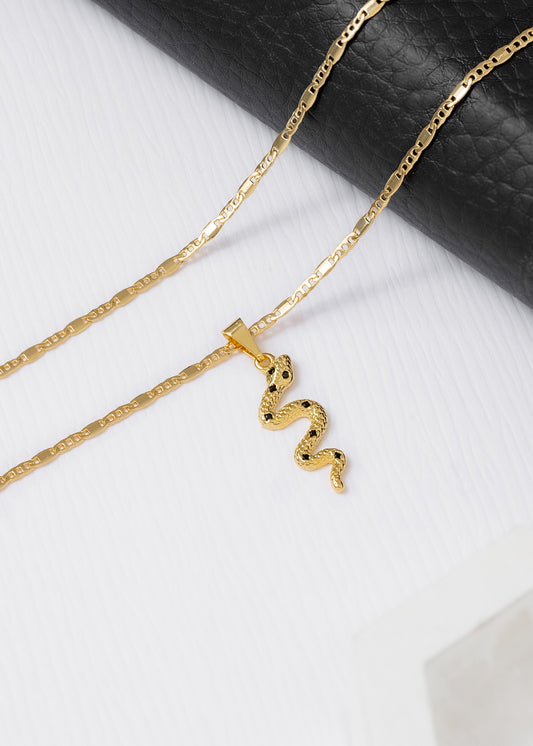 Cadena Escalera y Plana 65cms + Dije Serpiente Negra