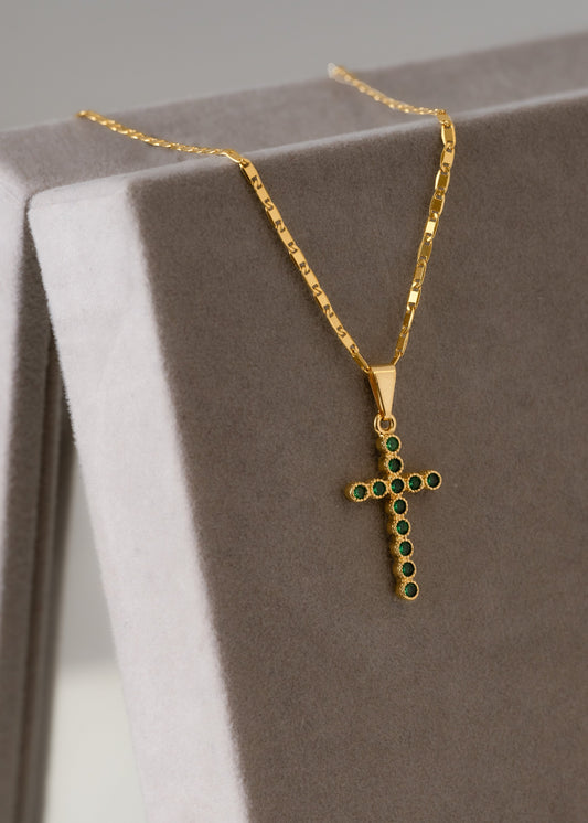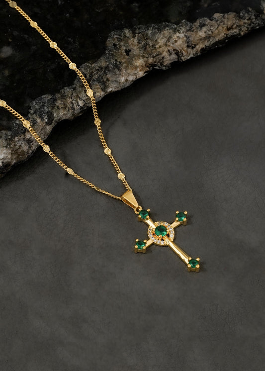 Cadena cubana sol 65cm + dije cruz verde