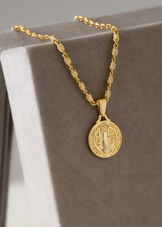 Cadena Caracol Gruesa (65cms) + Dije Medalla de San Benito