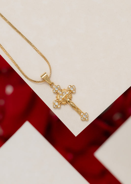 Cadena Serpiente 4 mm 65 Cms + Dije cruz cristo circonias 4cms