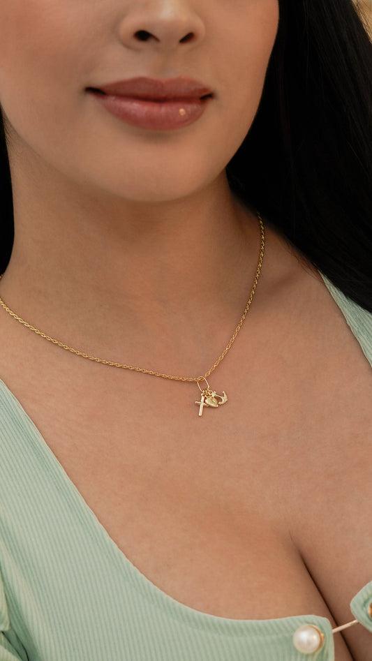 Dije Corazón Circonias + Cruz Mini