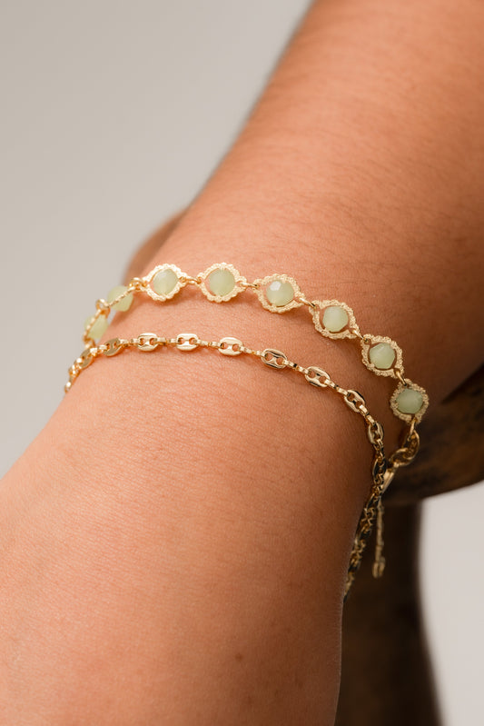 Pulsera Clover Malaquita 0,7 mm 15 Cms Plata Ley 925