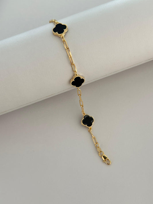 Pulsera trébol negro con eslabones