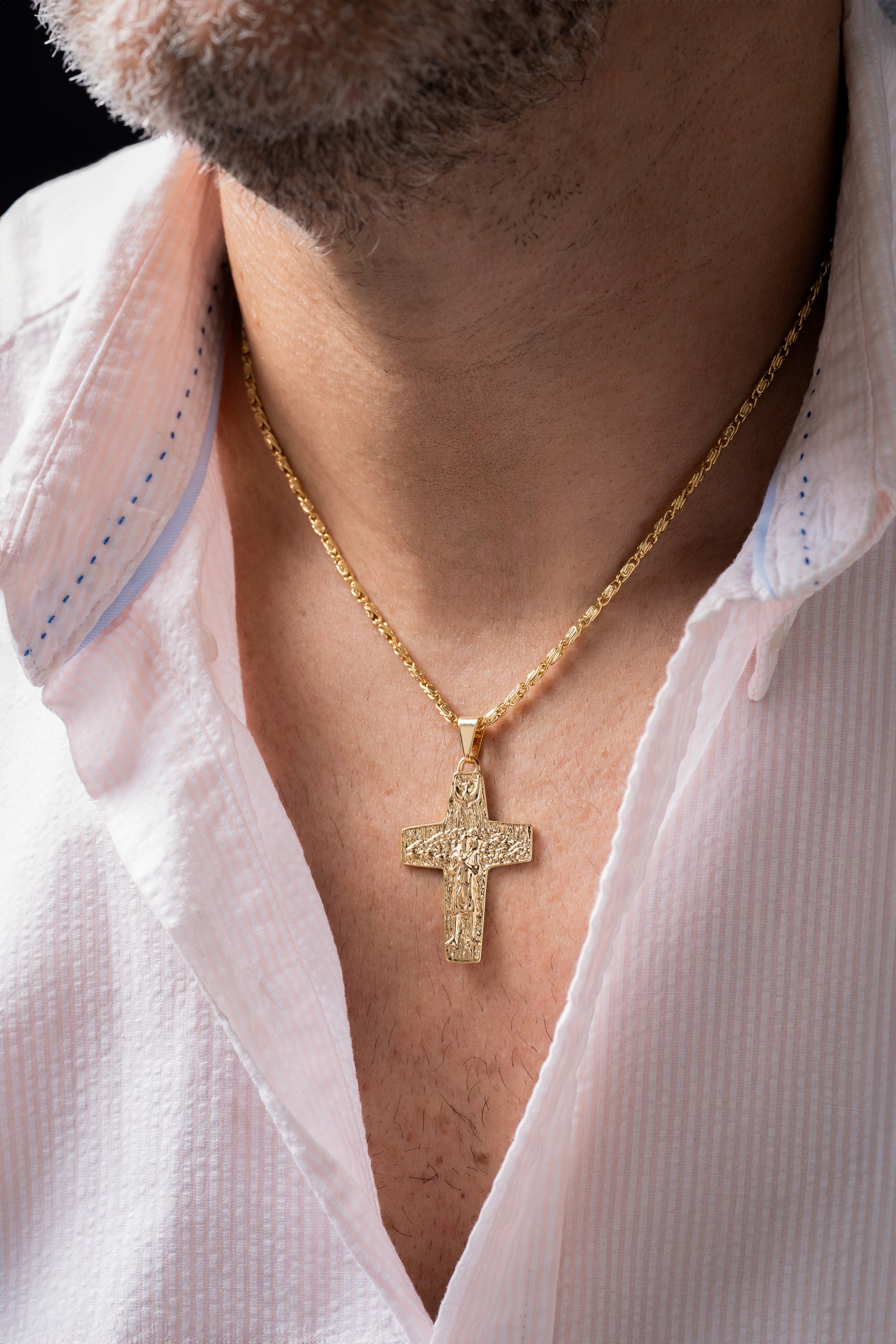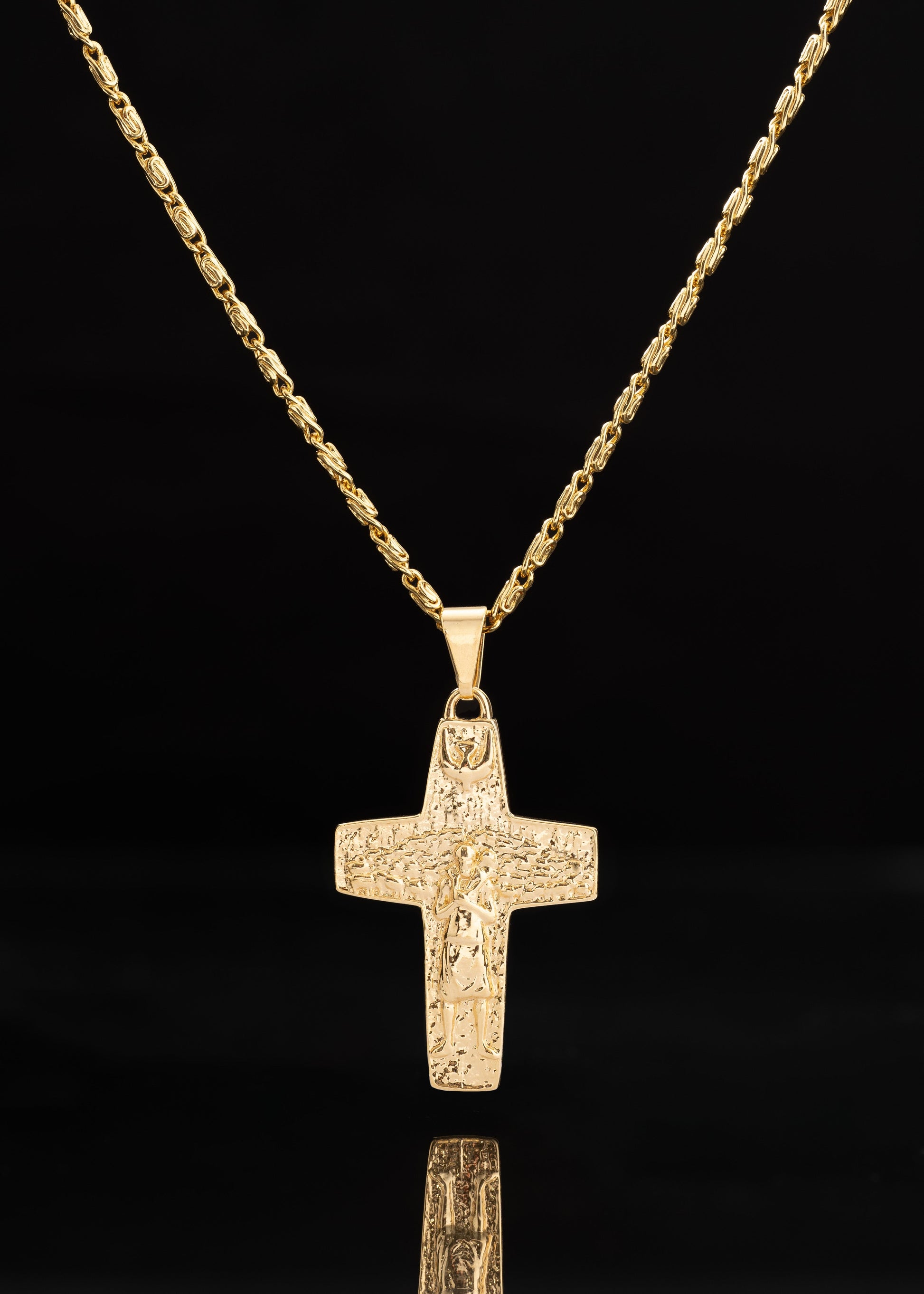 Cadena caracol gruesa 45cm + dije cruz buen pastor