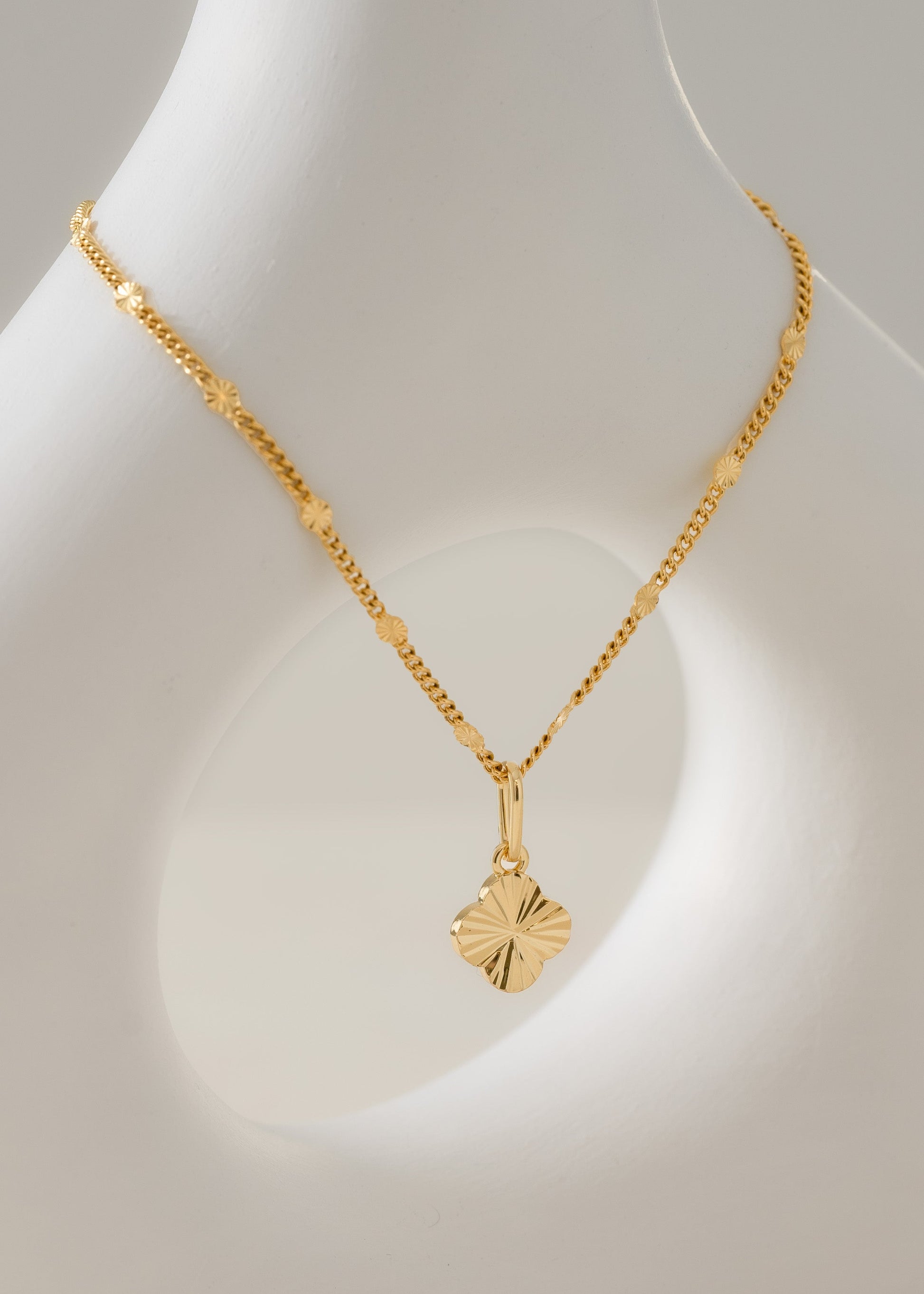Cadena Cubana con Destellos Punteras 45 Cms + Dije Clover Sol