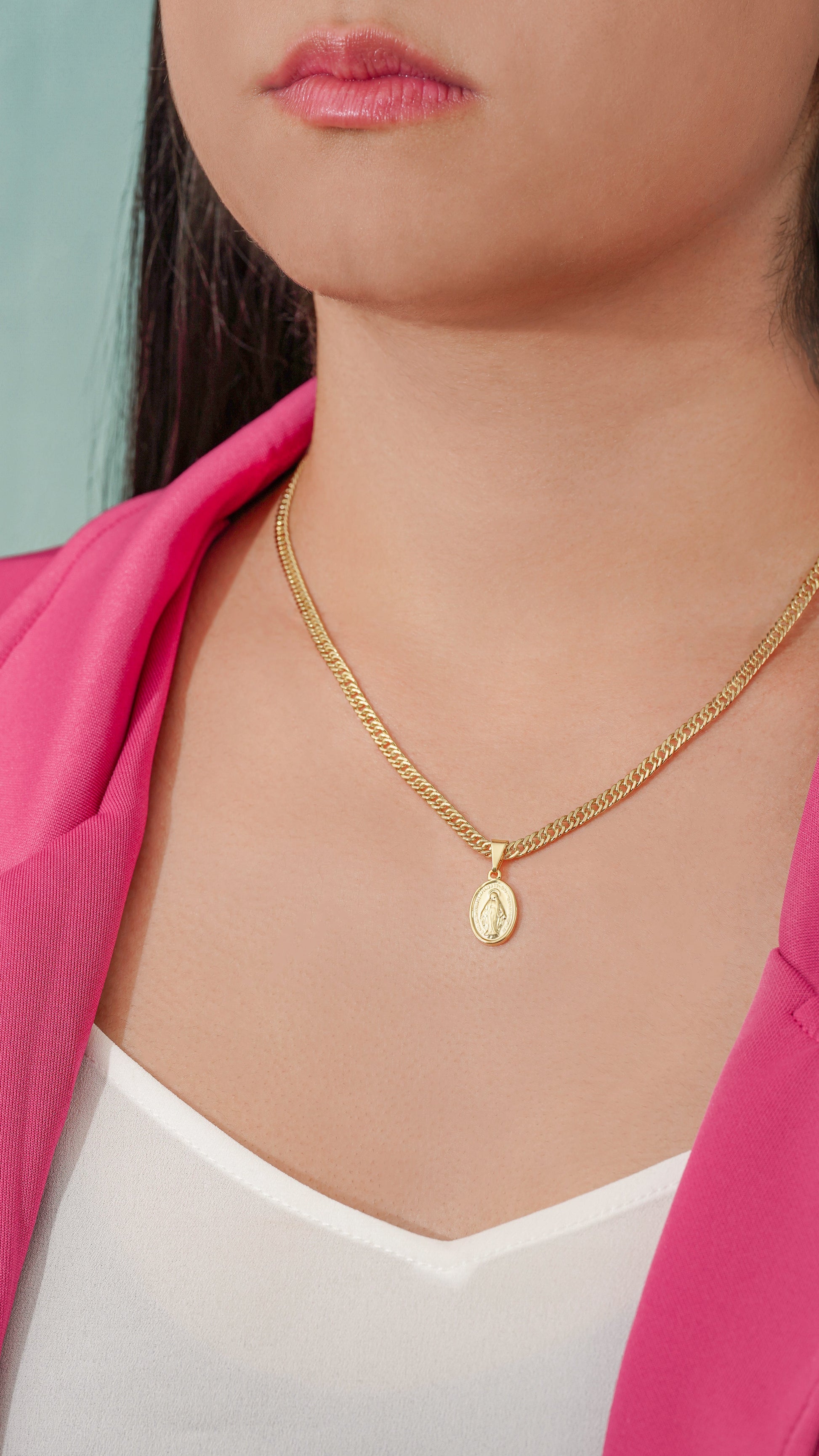 Cadena continúa 3mm 45cm + dije virgen milagrosa