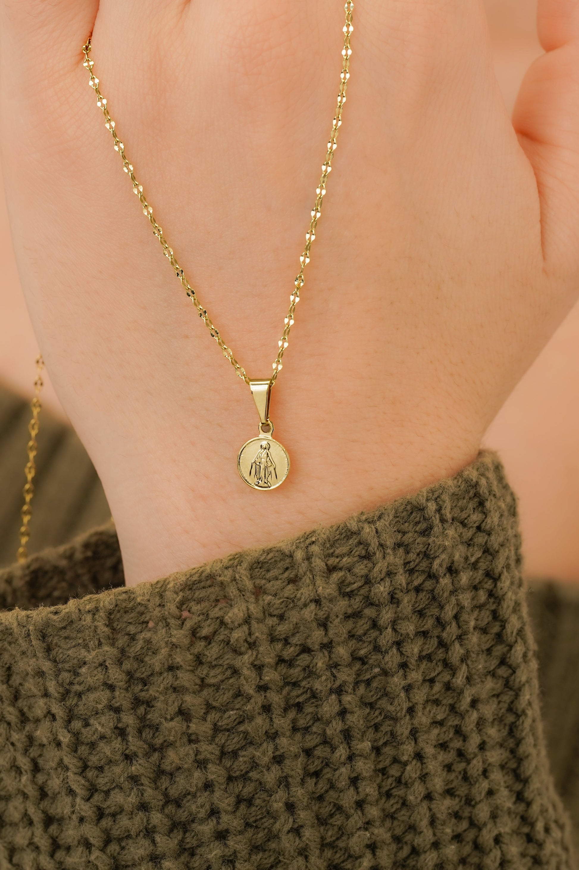 Cadena espejo mediana 45cm + dije Virgen milagrosa