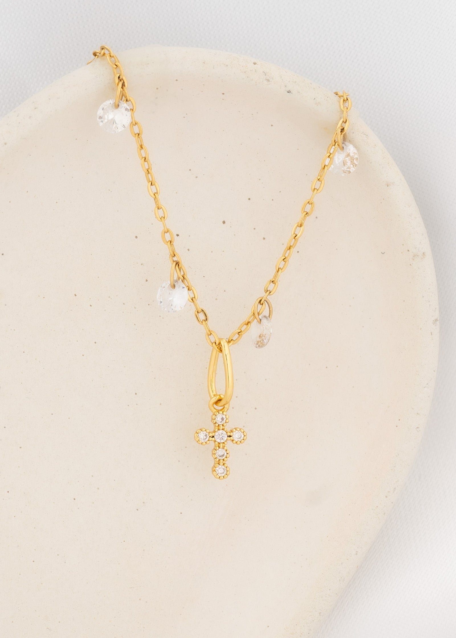Cadena Gypsy (35cms) + 5cms extensor + Dije Cruz Redondeada 1.6 Cms