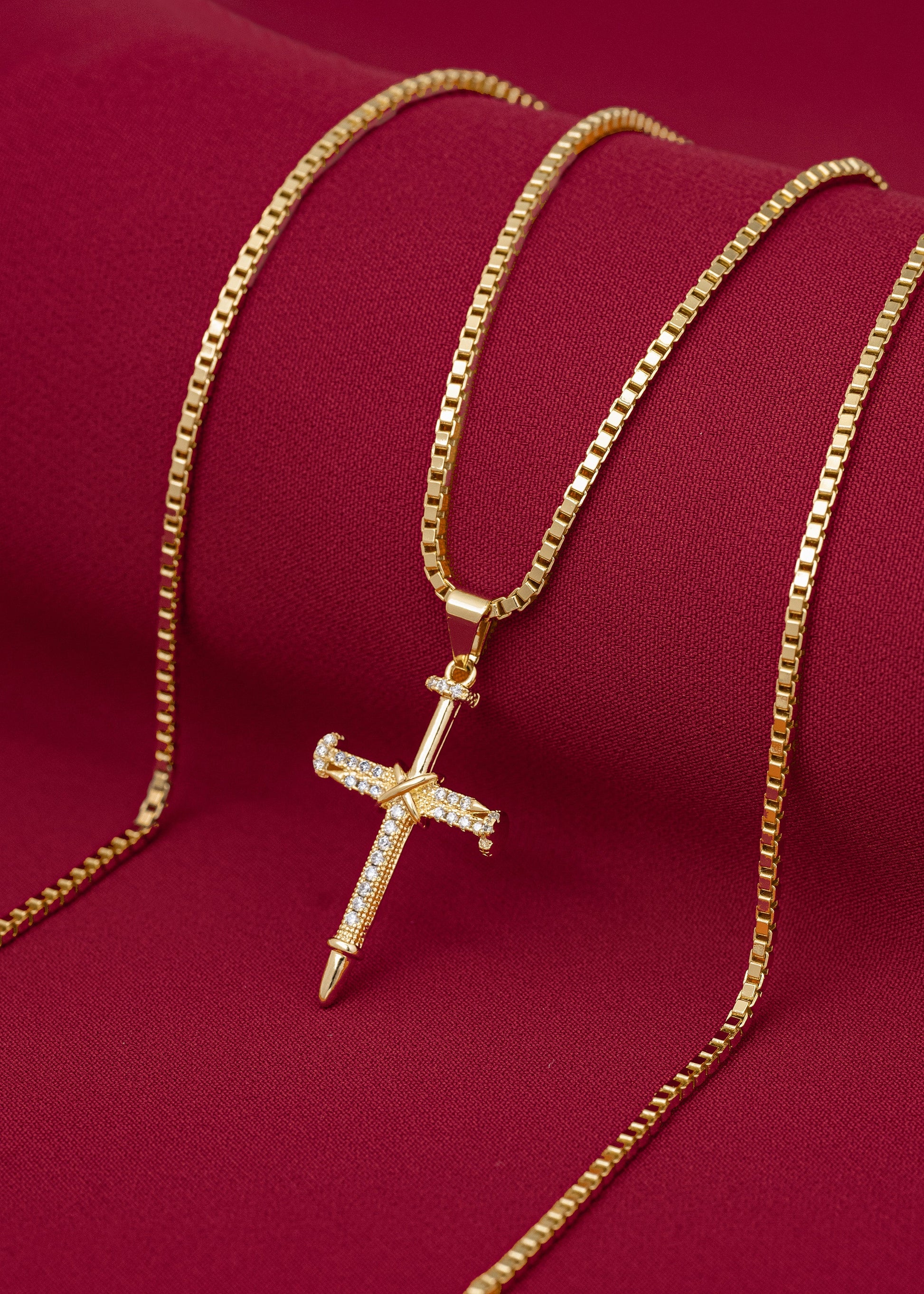 Cadena veneciana gruesa 65cms + Dije Cruz Clavos Circonias Cristal